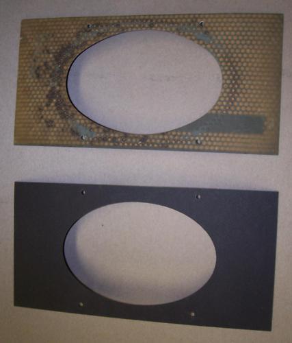 A while ago I purchased a Drake MS-4 speaker on eBay. When I received it I was diappointed with the appearance of the speaker grill. Instead of a uniform black background the grill had a mootled brownish and grey appearance. Click to see a pictorial of the simple replacement process.